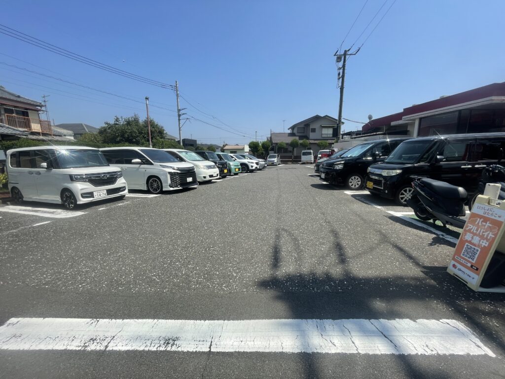 | 駐車のしやすさ | ★★★☆☆ | 駐車スペースは標準サイズ。混雑時は少し停めにくさを感じる。 |