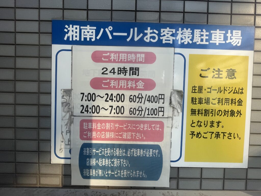 | 料金 | 店舗利用で割引有り。駐車券提示。通常60分400円 |