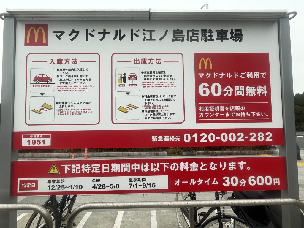 パーくんこの記事では【マクドナルド江ノ島店】の駐車場について、